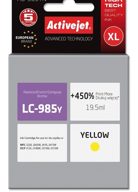 Activejet AB-985YN ink (replacement for Brother LC985Y; Supreme; 19.5 ml; yellow)