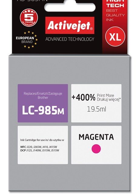 Activejet AB-985MN Ink (Replacement for Brother LC985M; Supreme; 19.5 ml; magenta)