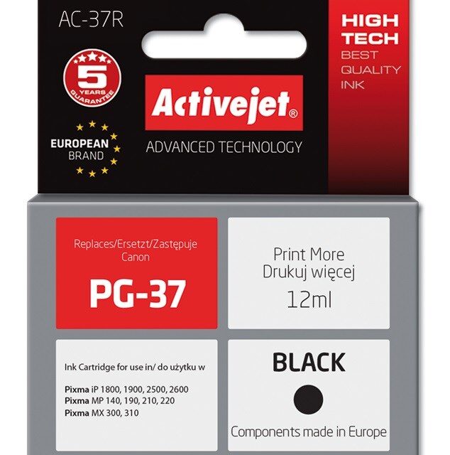 Activejet AC-37R Ink cartridge (replacement for Canon PG-37; Premium; 12 ml; black)