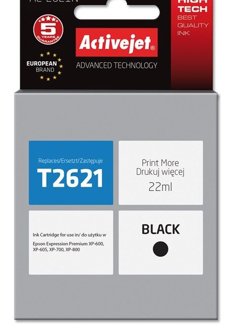 Activejet AE-2621N Ink cartridge (replacement for Epson 26 T2621; Supreme; 22 ml; black)
