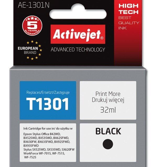 Activejet AE-1301N Ink cartridge (replacement for Epson T1301; Supreme; 32 ml; black)
