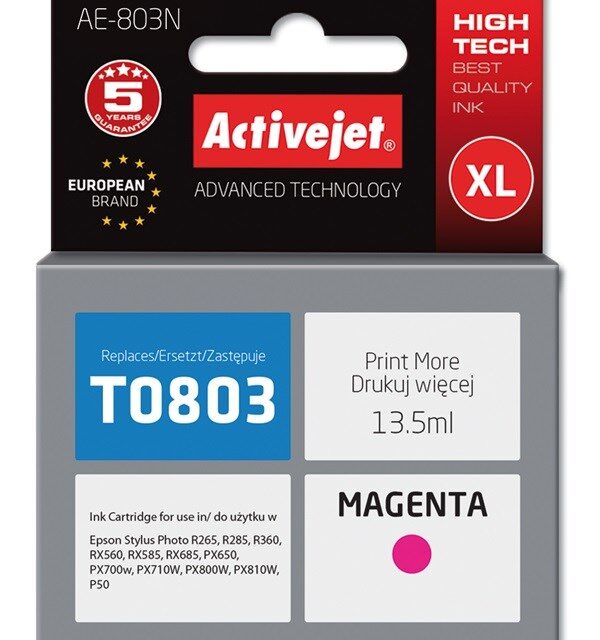 Activejet AE-803N Ink (Replacement for Epson T0803; Supreme; 13 5 ml; magenta)