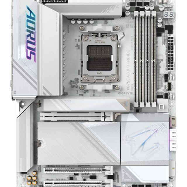 GIGABYTE X870E AORUS PRO ICE Motherboard – Supports AMD Ryzen 9000 CPUs 16+2+2 Phases Digital VRM up to 8000MHz DDR5 (OC) 3xPCIe 5.0 + 1xPCIe 4.0 Wi-Fi 7 2.5GbE LAN USB 4