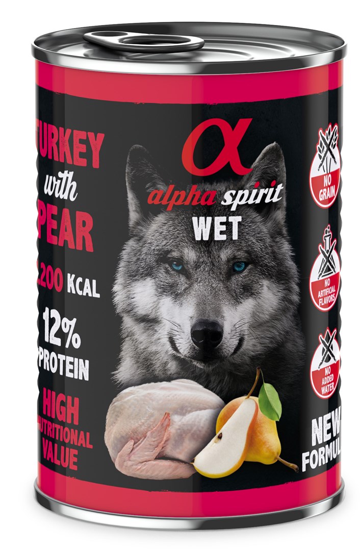 Prima pagină » Magazin » ALPHA SPIRIT WET Turkey with pear – wet dog food – 400g