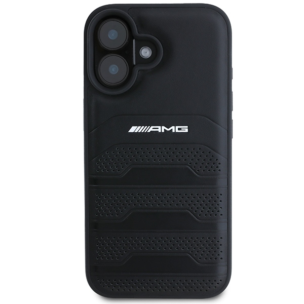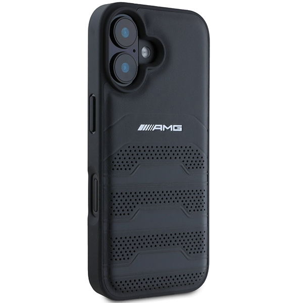 AMG AMHCP16SGSEBK iPhone 16 6.1″ black hardcase Leather Debossed Lines Black Logo