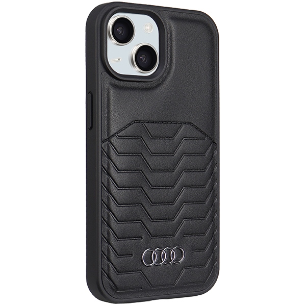 Audi Synthetic Leather MagSafe iPhone 15 / 14 / 13 6.1″ black hardcase AU-TPUPCMIP15-GT/D3-BK