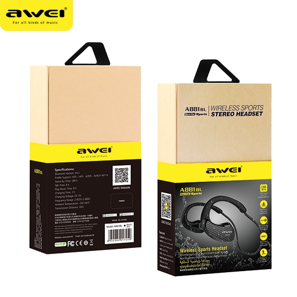 Awei A881BL Wireless HiFi Bluetooth V4.2 Waterproof Noise Reduction Earphones Headphones