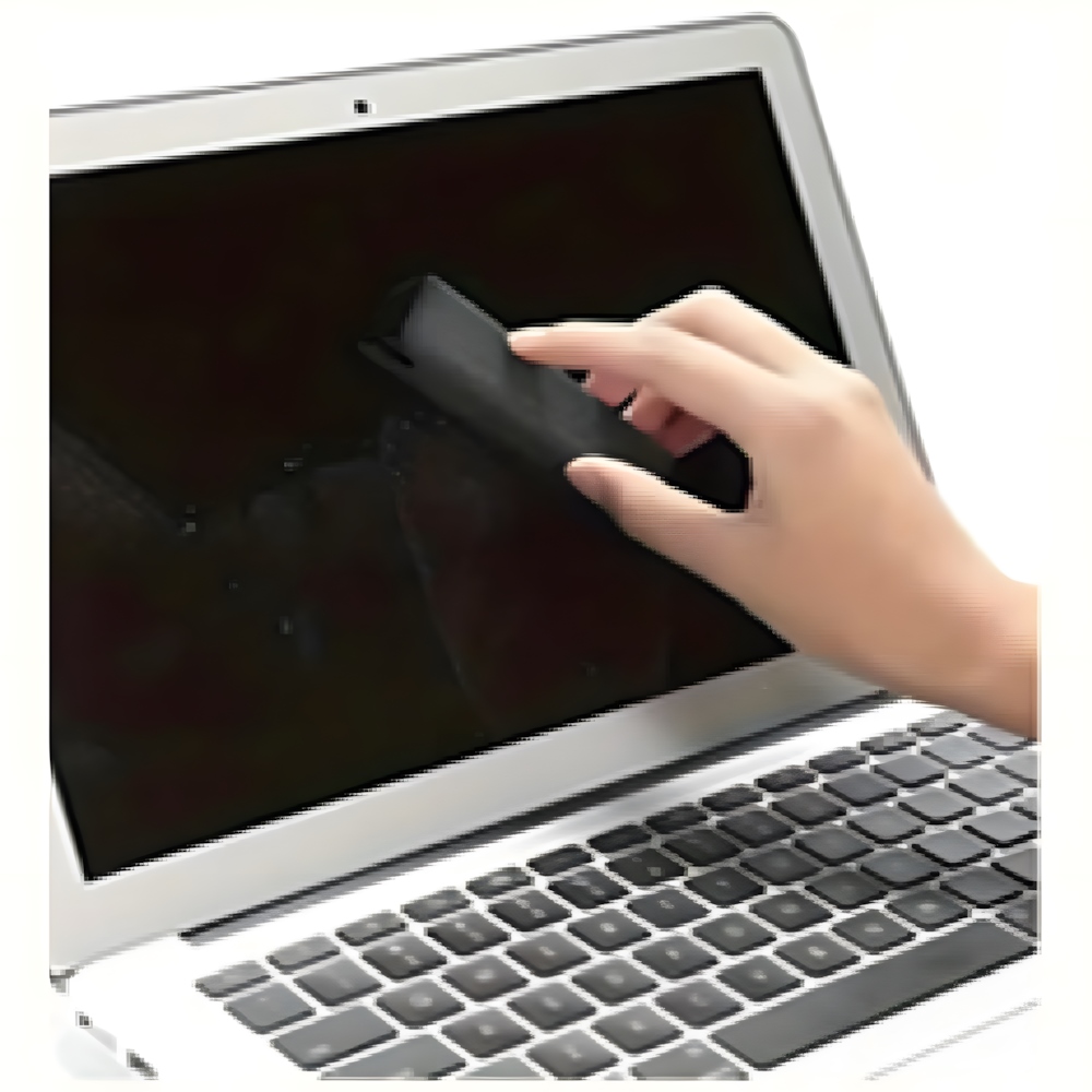 A modern screen cleaning spray, enclosed in a functional container covered with soft microfiber material. The container also works as a cloth, allowing easy and quick cleaning of smartphone, tablet, laptop, or TV screens. The cleaning solution effectively removes dirt, greasy marks, and fingerprints, leaving no streaks or residue. Ideal for everyday use, compact, and easy to take on the go. A practical solution for people who value cleanliness and convenience.