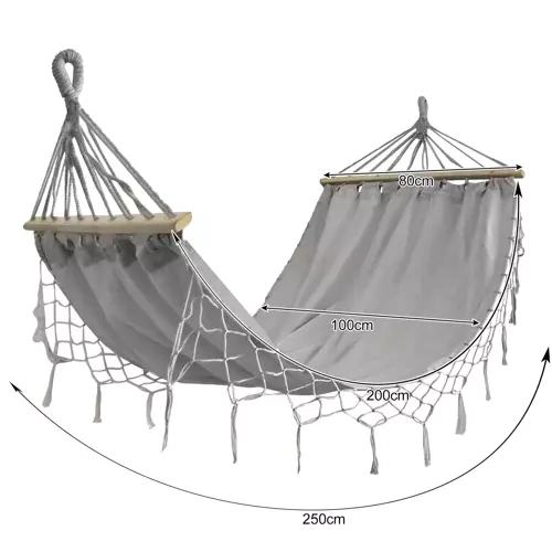 Prima pagină » Magazin » Black Forest Hammock, gray with fringes, single 200x100cm with stand