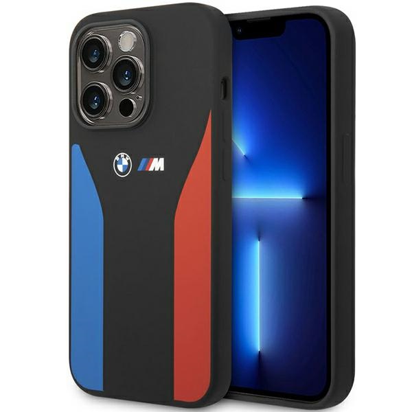 BMW BMHCP14L22SCSK case iPhone 14 Pro 6.1″ black Silicone Blue&Red Stripes M Collection