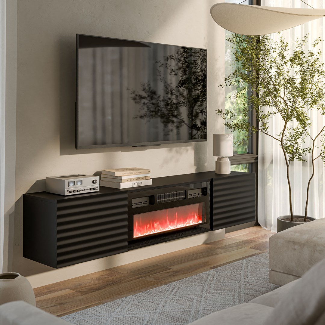 Cama RTV cabinet TULA 183x35x37 black matt + black fireplace