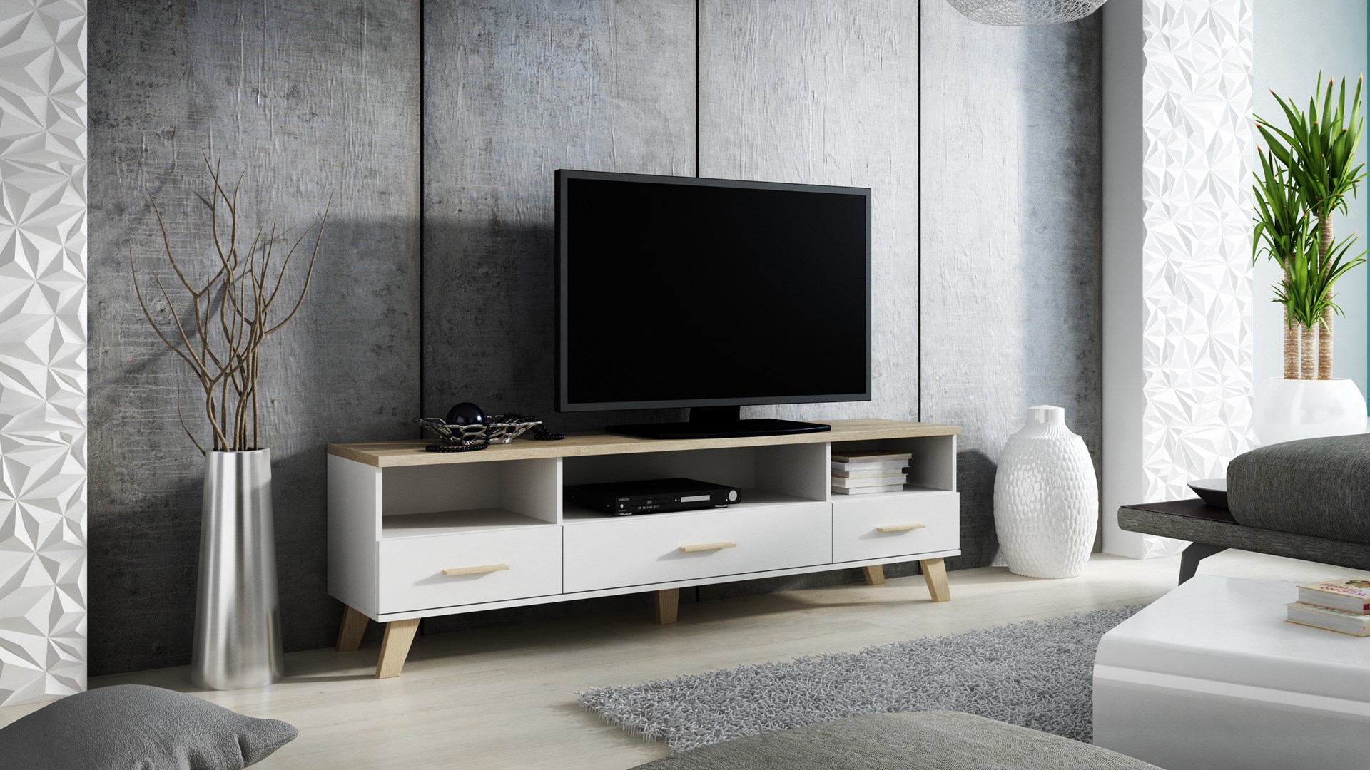 Cama RTV stand LOTTA 180cm white + sonoma oak
