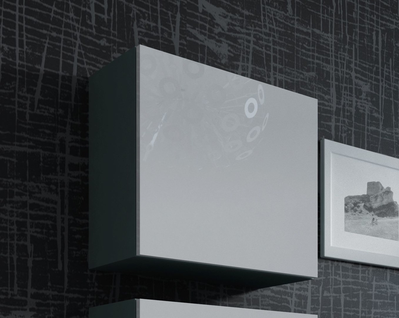 Wall cabinet, The photos of the sets show an example arrangement with other furniture from the collection. The remaining models are available for sale separately., It is possible to buy LED cabinet lighting., One standard shelf inside |