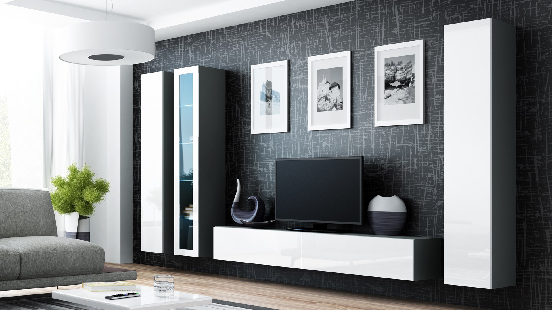 Self-assembly furniture, The photos of the sets show an example arrangement with other furniture from the collection. The remaining models are available for sale separately., It is possible to buy LED cabinet lighting. |