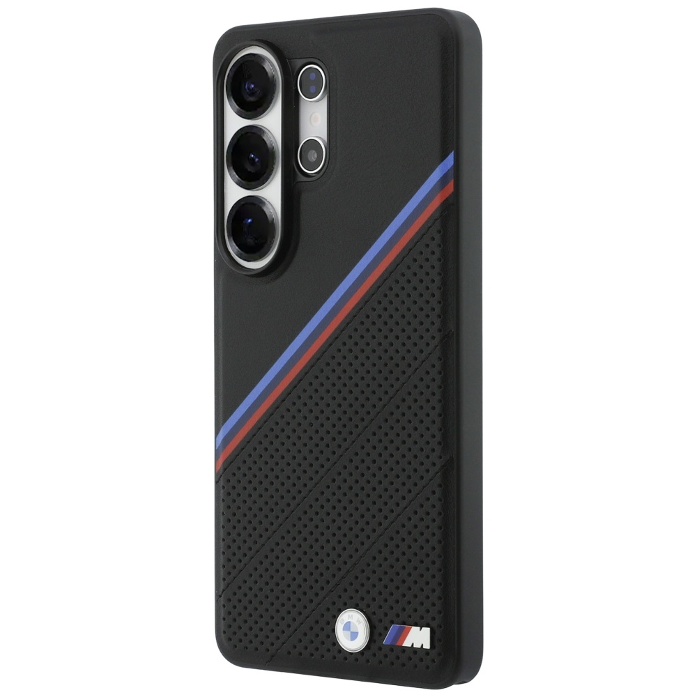 Exclusive protective case from the renowned eco-leather with a signature BMW M stripes and a metal logo.