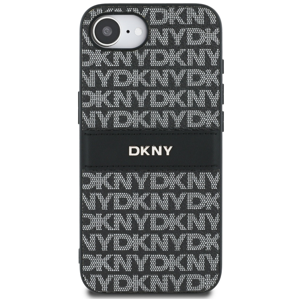 Case DKNY Repeat Texture Pattern with Tonal Stripe for iPhone 16e black