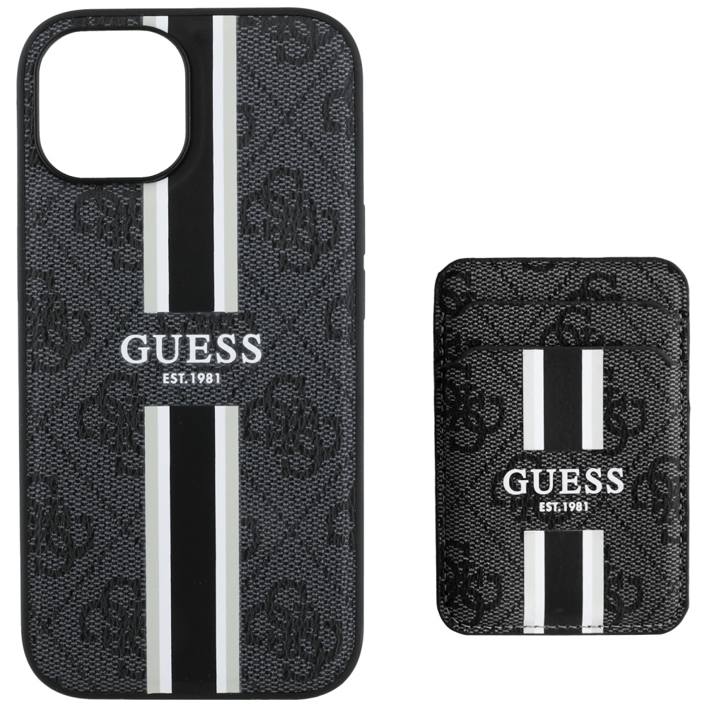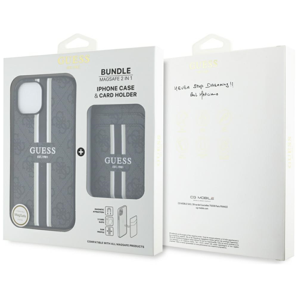 Case Guess 4G Stripes with wallet Magsafe for iPhone 15 black