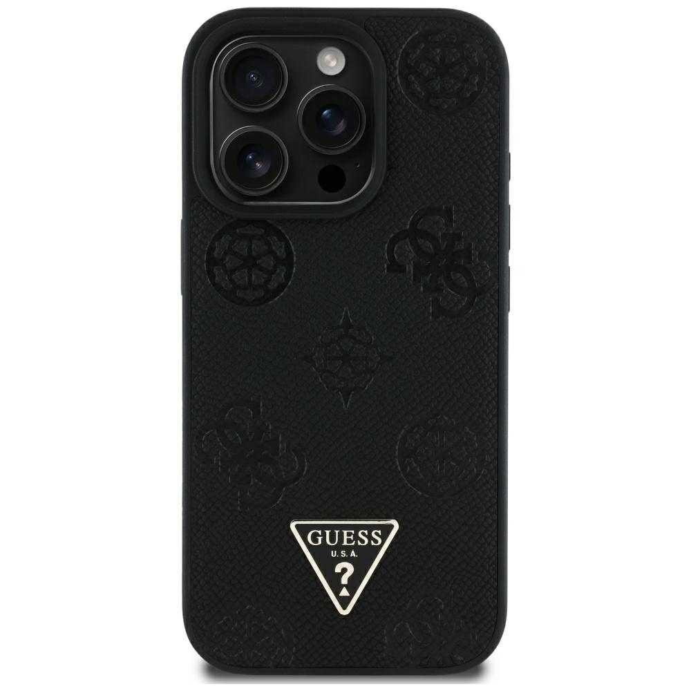 Case Guess Grained Hot Stamp Peony Triangle Logo MagSafe for iPhone 16 Pro Max black