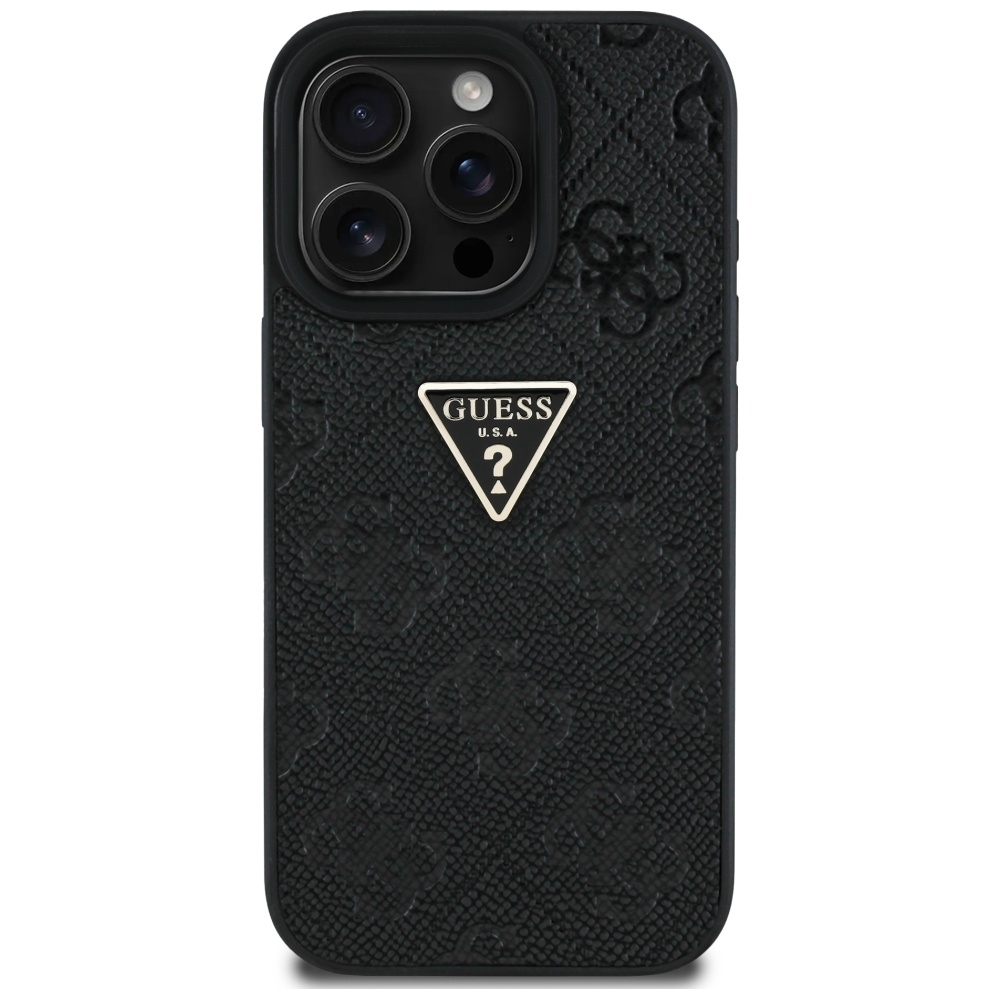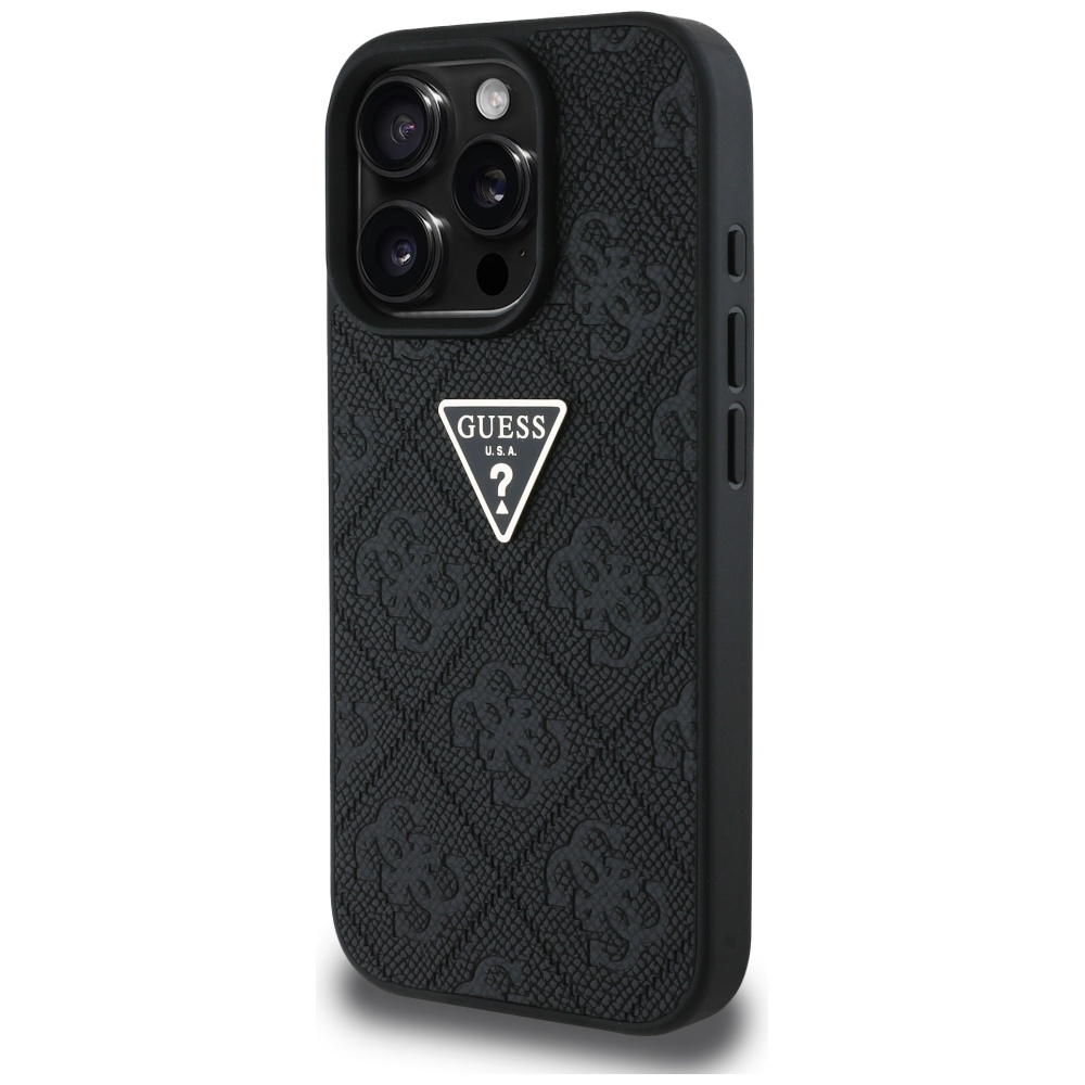 Case Guess Hot Stamp 4G Pattern Triangle Metal Logo for iPhone 16 Pro Max black