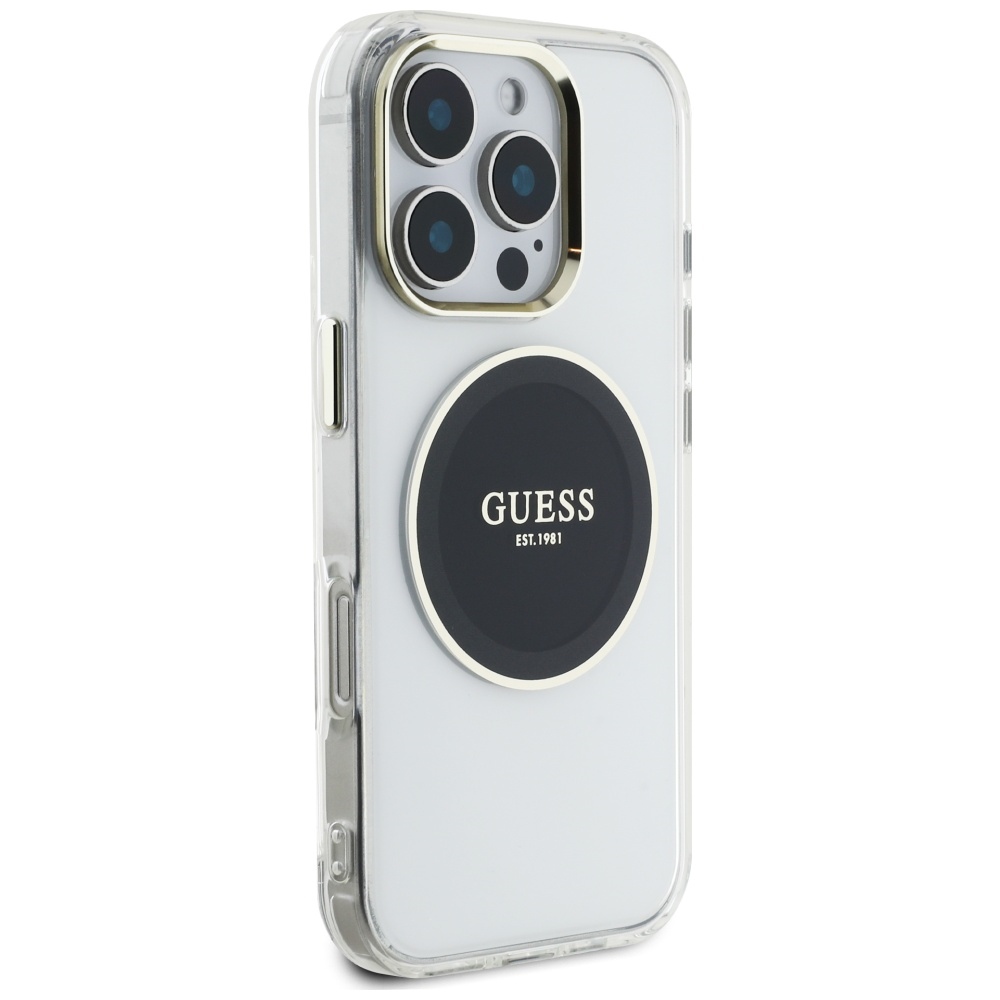 Case Guess IML Metal Colored Circle Classic Logo MagSafe for iPhone 16 Pro black