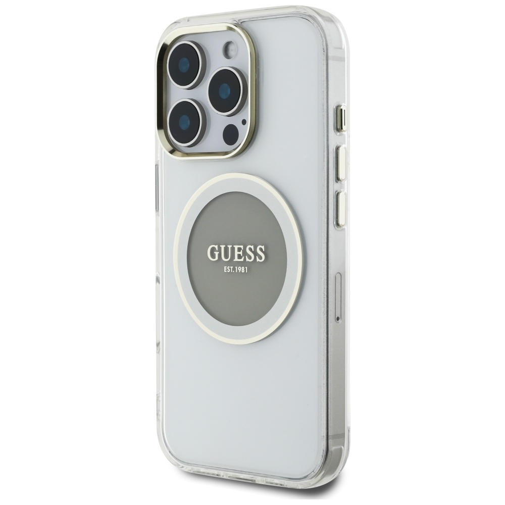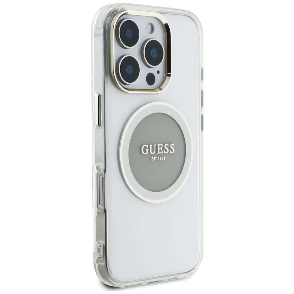 Case Guess IML Metal Colored Circle Classic Logo MagSafe for iPhone 16 Pro grey