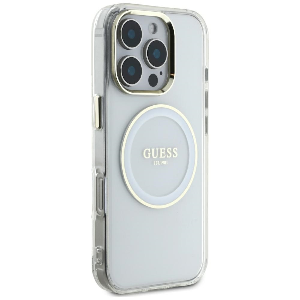 Case Guess IML Metal Colored Circle Classic Logo MagSafe for iPhone 16 Pro Max white