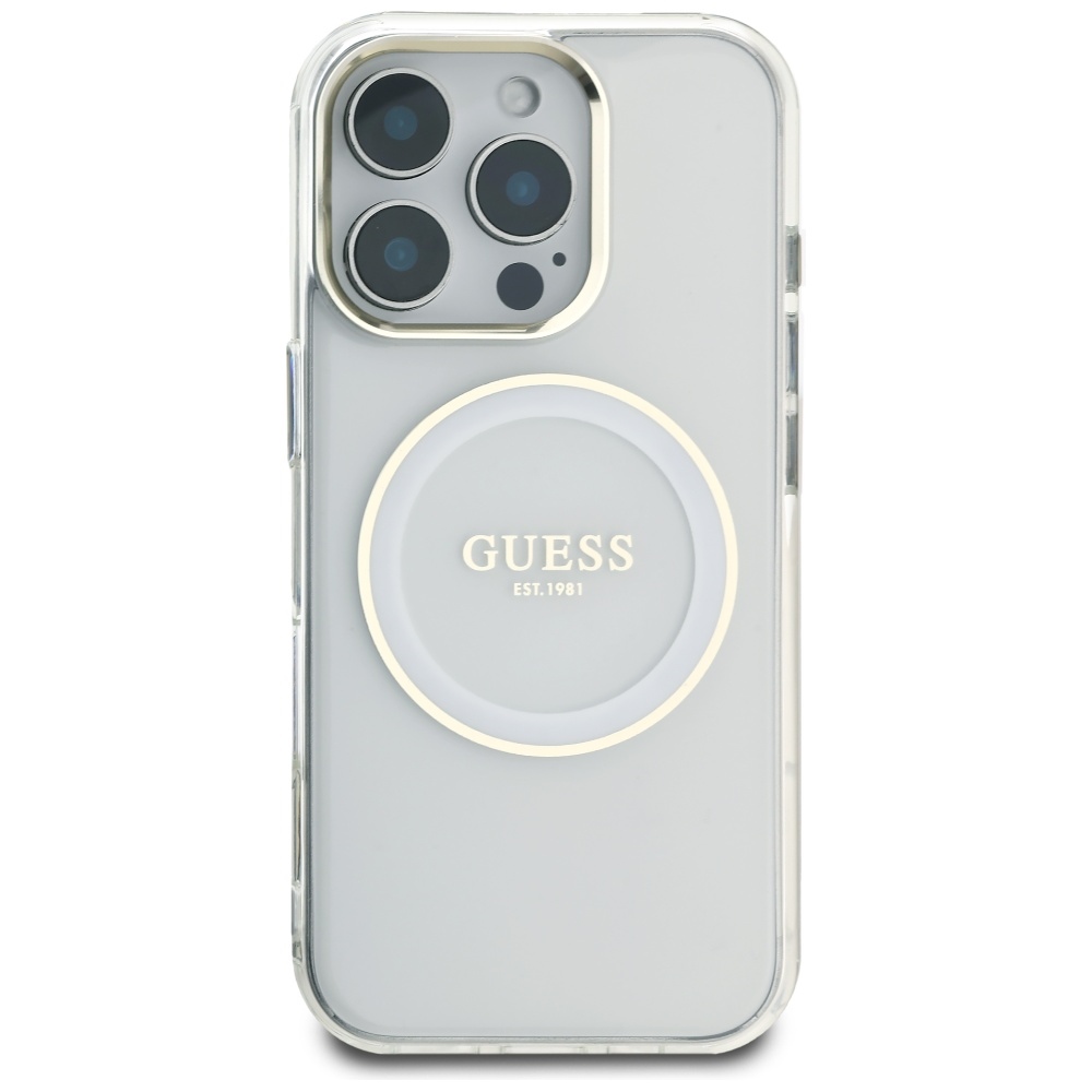 Case Guess IML Metal Colored Circle Classic Logo MagSafe for iPhone 16 Pro white
