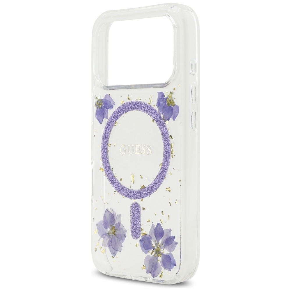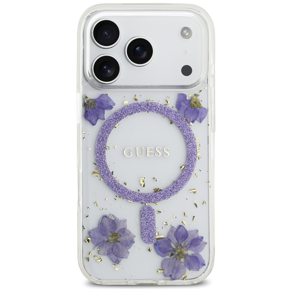 Collection Guess Resin Flowers Glitter MagSafe Type Hardcase Material TPU / PC Color Purple Compatibility iPhone 17 Pro