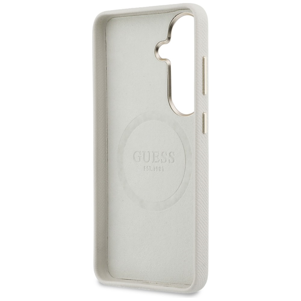 Case Guess Rhinestone Round Logo MagSafe for Samsung Galaxy S26 Plus beige
