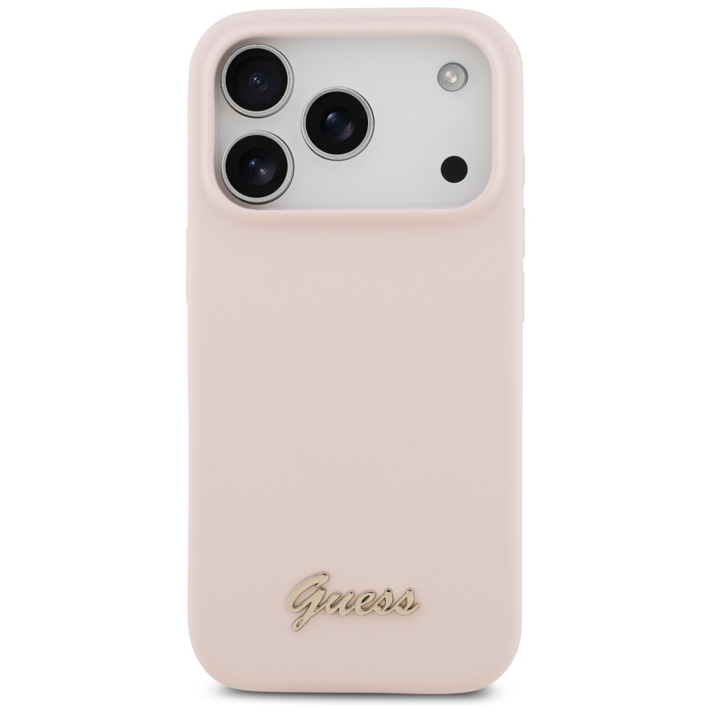 Case Guess Silicone Script Metal Logo MagSafe for iPhone 17 Pro pink