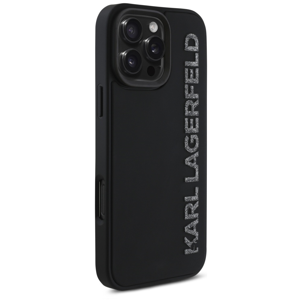 Case Karl Lagerfeld HC 3D Rubber Elongated Glitter for iPhone 16 Pro black