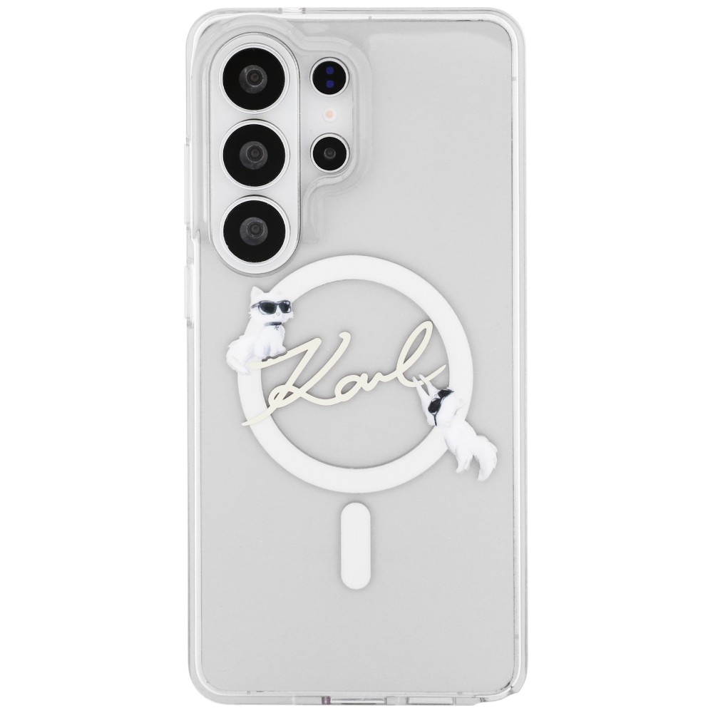 Karl Lagerfeld IML Choupette Karl Script Logo Magnetic zadní kryt je dokonalý doplněk pro váš telefon i váš outfit, který kombinuje funkčnost a styl v jednom.