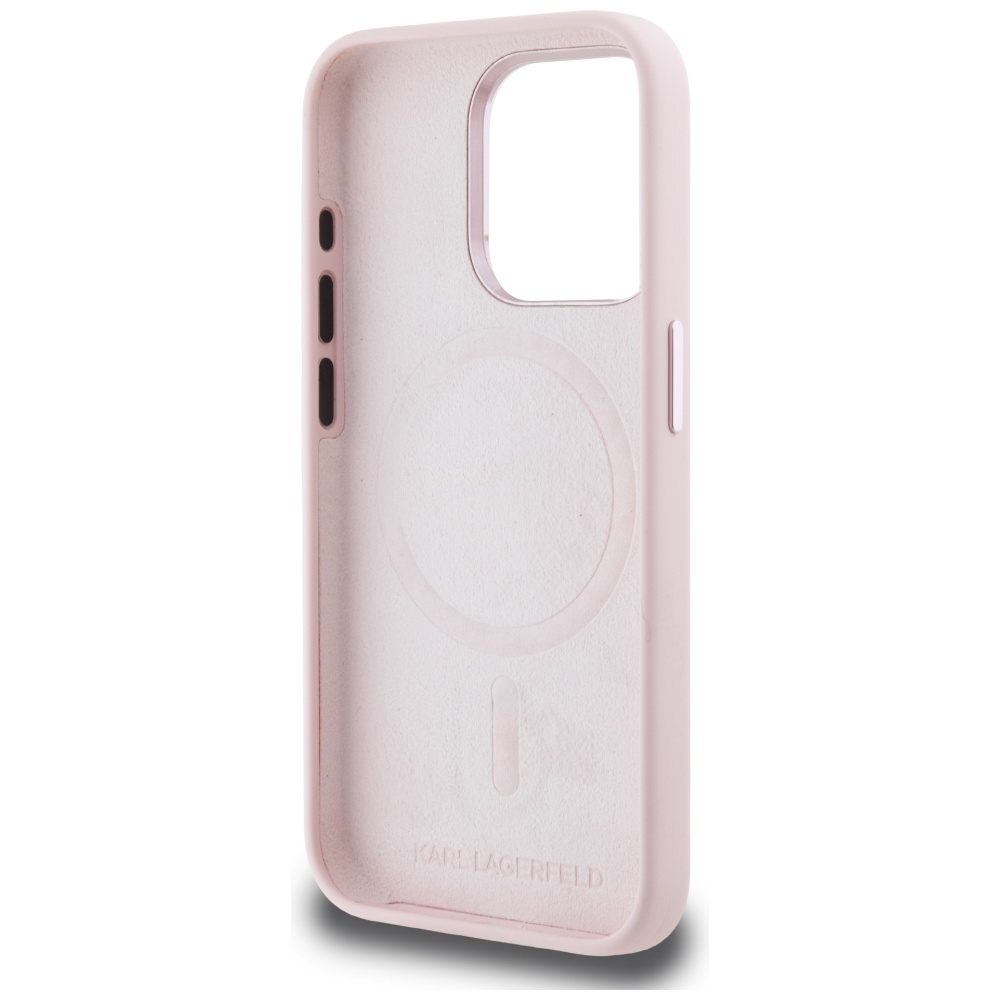 Case Karl Lagerfeld Silicone Shadow Metal Initial MagSafe for iPhone 15 Pro Max pink