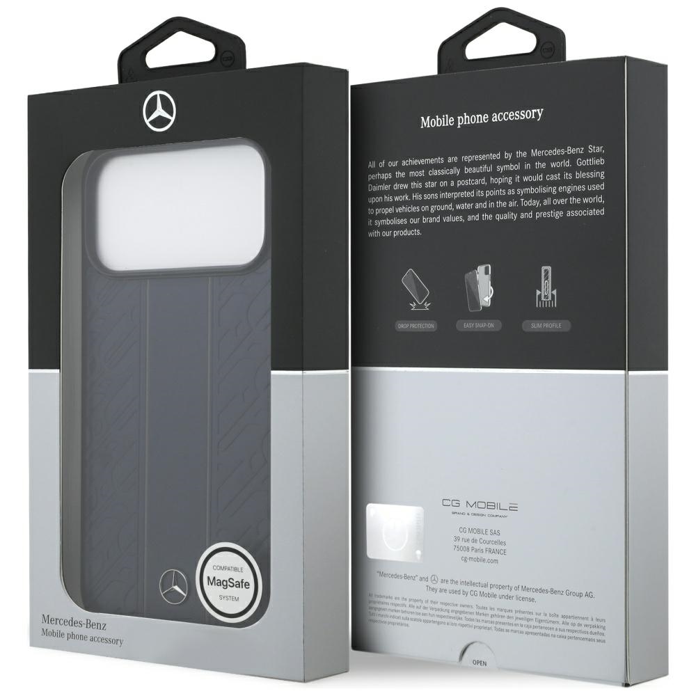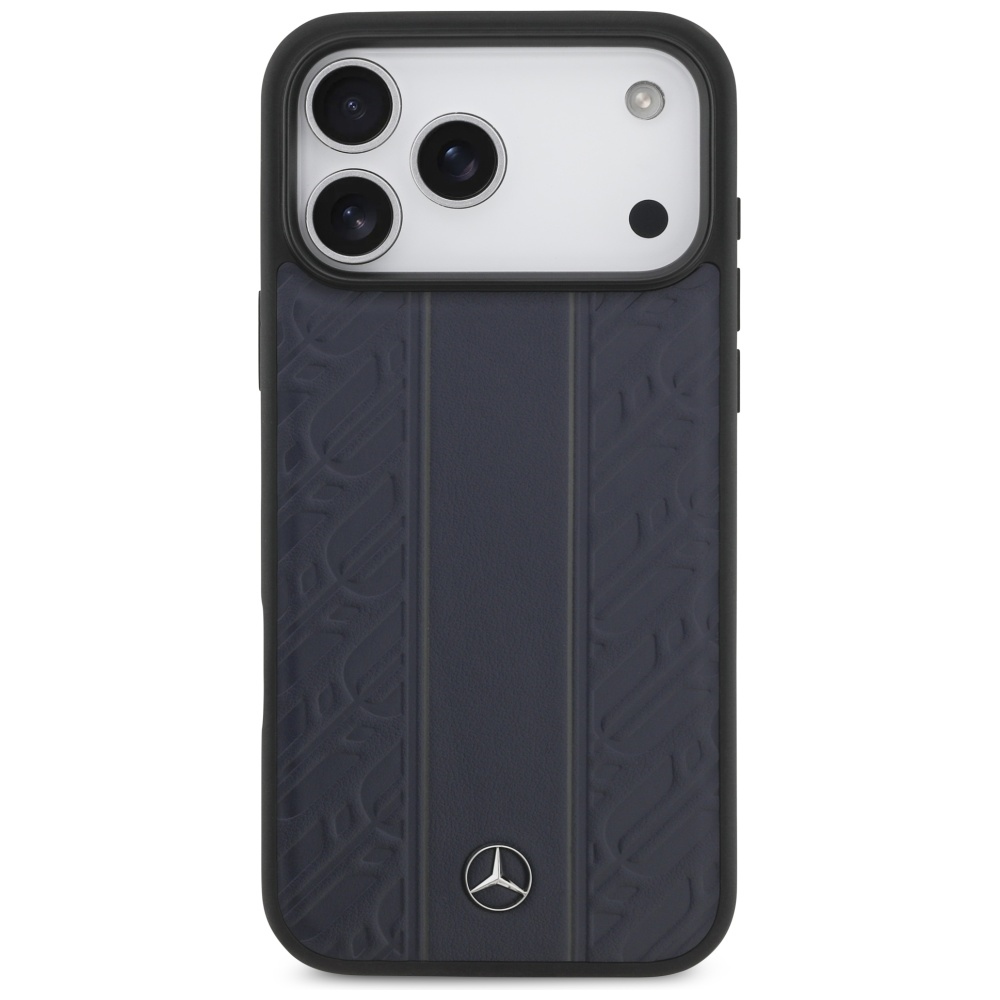 Case Mercedes Leather Laurel Leaves Stripes MagSafe for iPhone 17 Pro Max blue