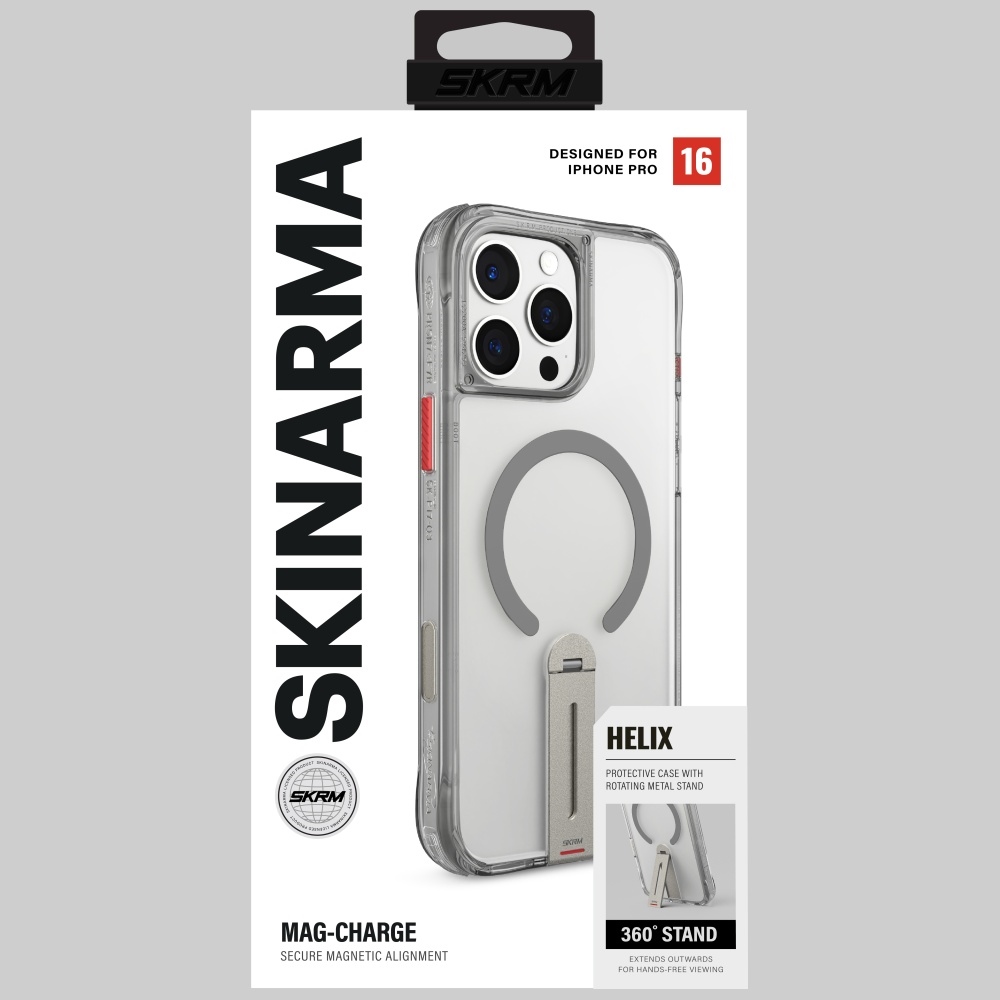 Collection Skinarma Helix Magnetic Charging 360 Rotating Stand Material Plastic Color Titanium Compatibility iPhone 16 Pro 6.3″