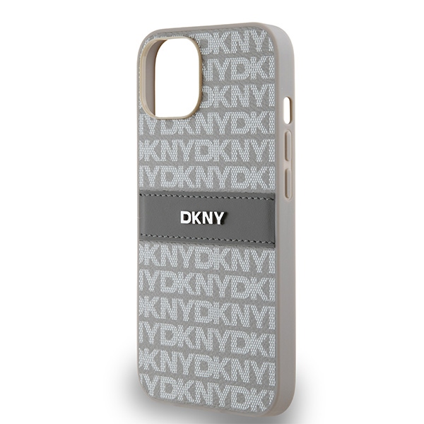 DKNY DKHCP14SPRTHSLE iPhone 14 / 15 / 13 6.1″ beige hardcase Leather Mono Stripe & Metal Logo