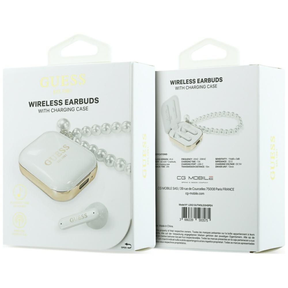 Earphones TWS Guess Pearl Strap white