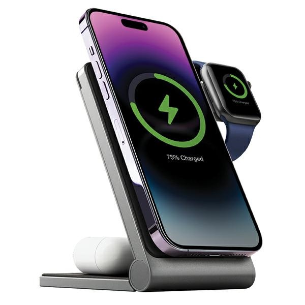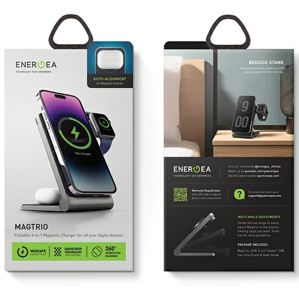 Energea MagTrio foldable charger induction 3-in-1 15W Fast Charging gray/gunmetal MagSafe