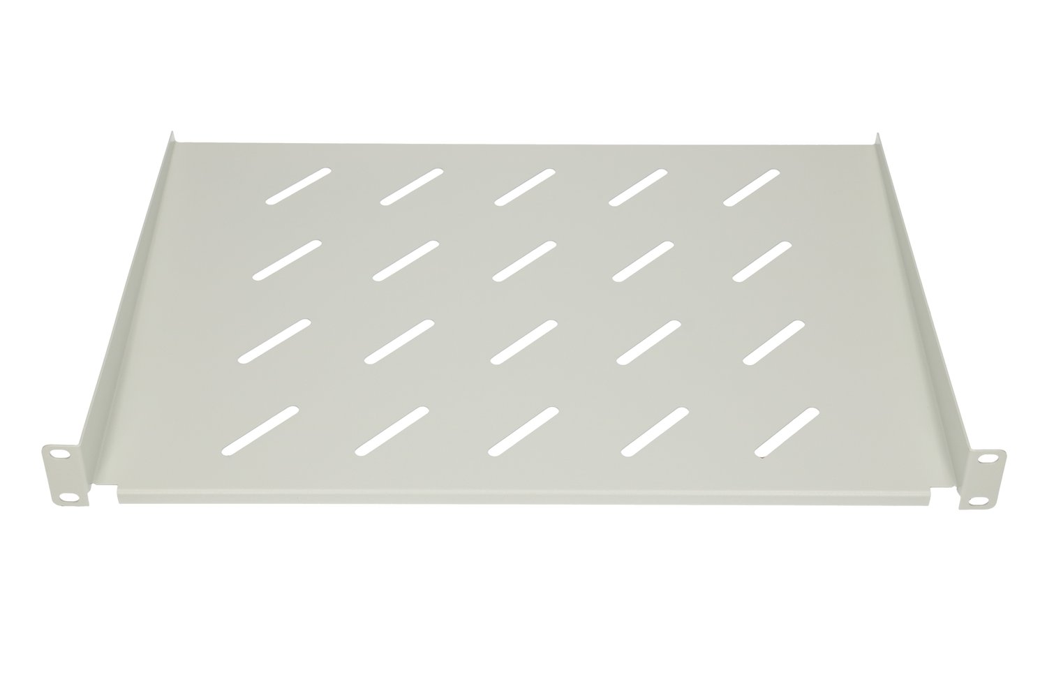 Fixed shelf with a width of 483mm, dedicated for 19” RACK hanging cabinets. With its help, it is possible to mount devices in the cabinet that do not have RACK 19′‘ enclosures. Made of steel sheet in gray color. The shelf is fixed in 4 points, which guarantees its stability. RACK standard cabinets are widely used in server rooms, recording studios, industrial premises, teletechnology and power engineering.