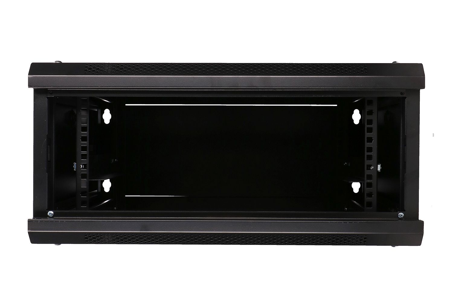 Extralink rack cabinet is designed for wall mounting in offices, network server rooms and CCTV control rooms. External walls are made of cold rolled steel sheet. Equipped with tempered glass front door can open to left or right side.