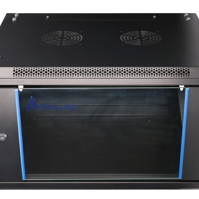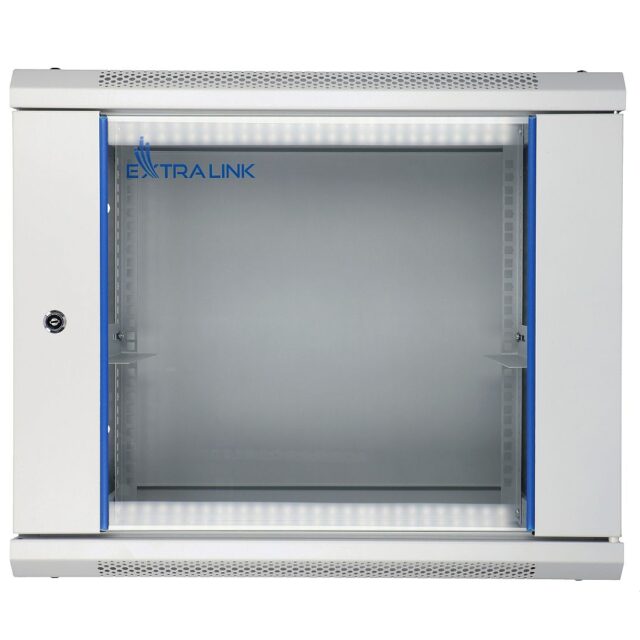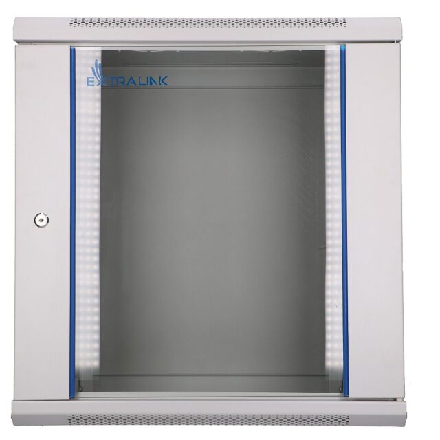 Extralink’s rack cabinet is designed for wall mounting in offices, network server rooms and CCTV control rooms. The outer walls are made of cold-rolled steel sheet. Equipped with tempered glass, the front door can open to the left or right side.