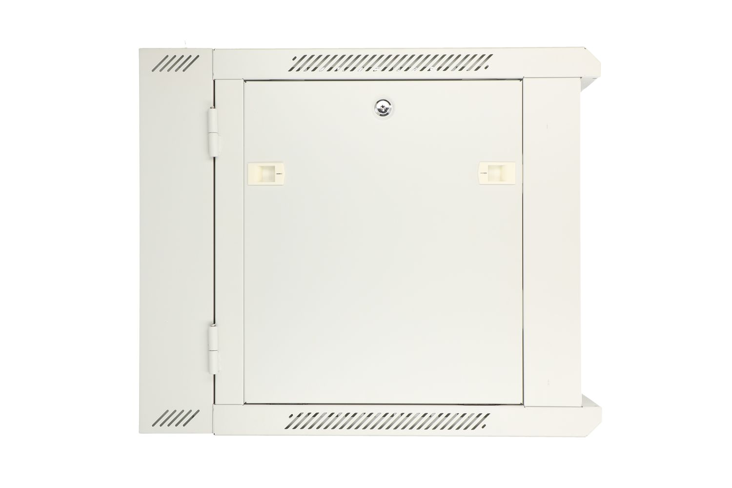 The Extralink rack cabinet is designed for wall mounting in offices, network server rooms and control rooms of CCTV installations. The external walls are made of cold-rolled steel sheet, while the front door has a tempered glass pane with the possibility of opening to the left or right side. Two-section construction facilitates access to the installed components from the back.