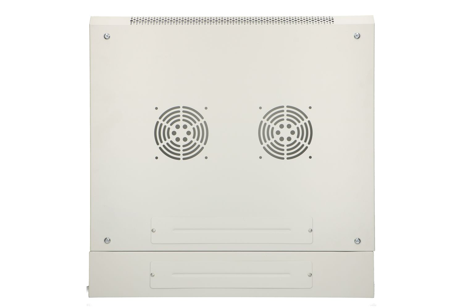 On the ceiling of the cabinet there are 2 places to install fans for better cooling of the devices, as well as 2 additional passages for pulling out cables.