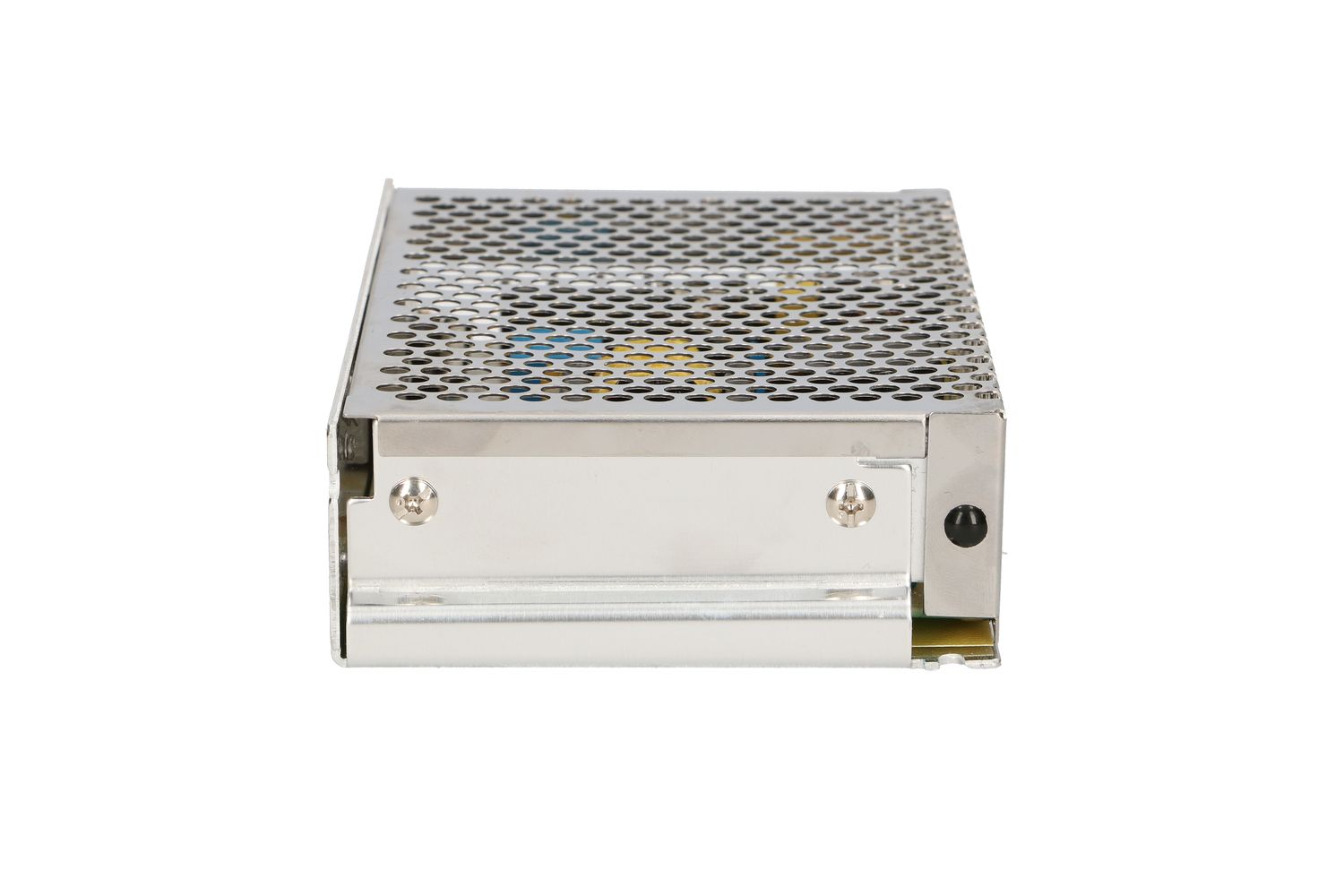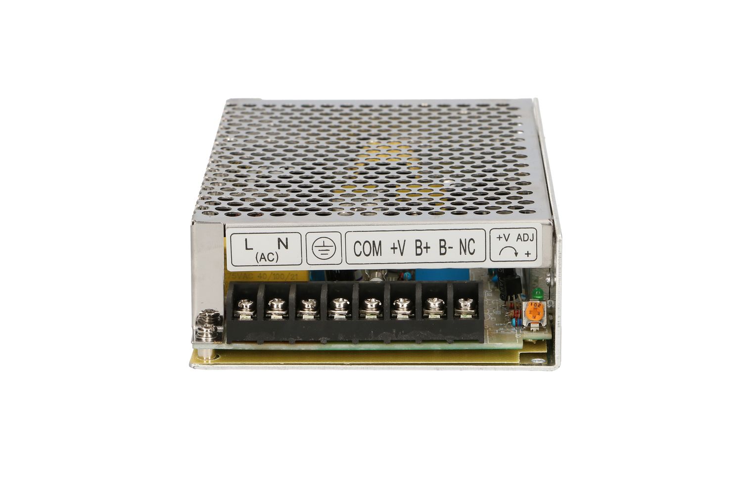 The perforated metal casing facilitates airflow, which results in more efficient cooling of the unit. The screw terminals are marked accordingly and are used to connect the cable entries in accordance with electrical principles. The installer can adjust the output voltage in a given range with a potentiometer.