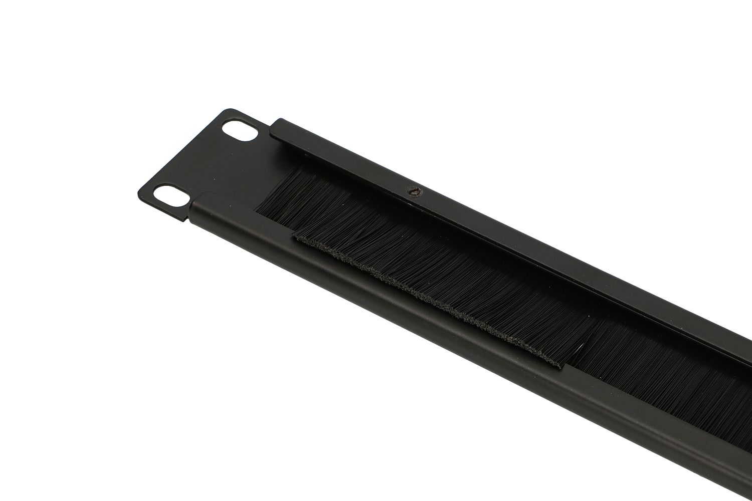 Cable organizer designed for 19″ rack type cabinets, allows to lead patchcords passing from the front of the cabinet to the interior. Similarly to many network devices, it is mounted butt to rack rails and takes 1U. The main part is made of plastic brush strips that limit dust penetration. It can be used with both copper and fibre optic cables.