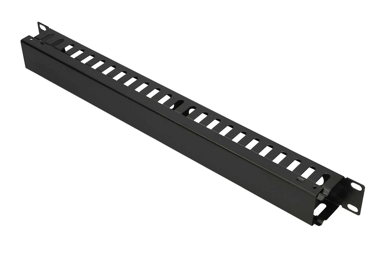 The Extralink organizer serves as a guide for patchcords in rack cabinets. It is mounted in standard 19″ racks, helping to keep them tidy. Organizers can be used in both hanging and standing 19″ racks. They take up little space and significantly improve the placement of cables inside the cabinet. Their working height is 1U.