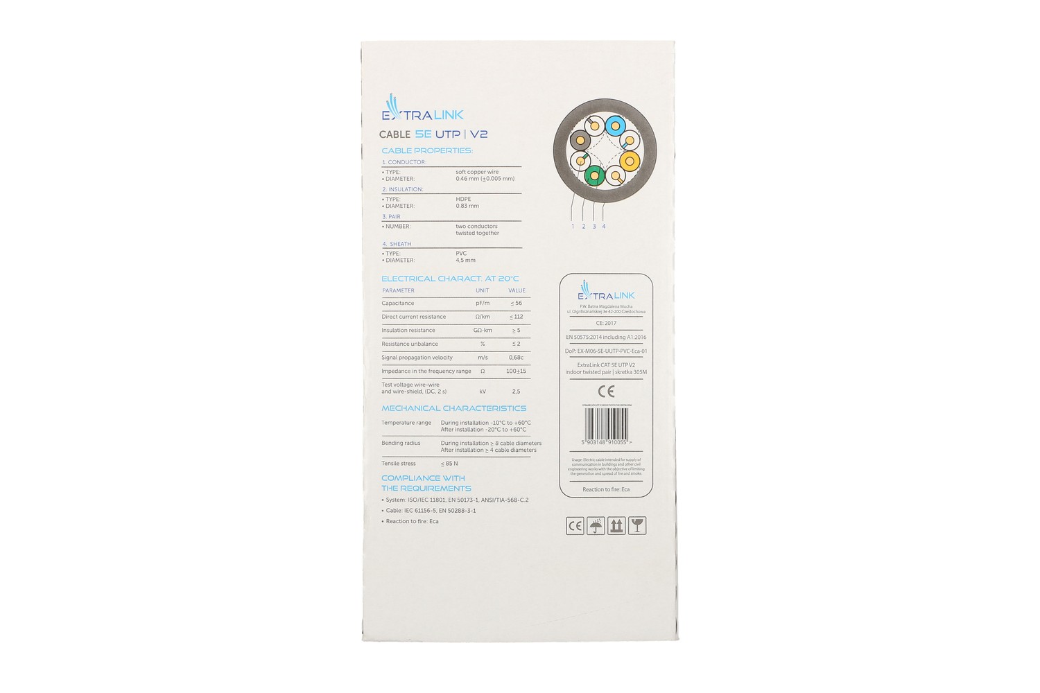Extralink CAT5E UTP (U/UTP) V2 Indoor | Twisted pair | 305M