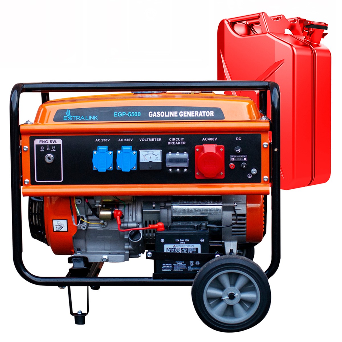 Specially designed to be one of the most valuable tools at home or work. With a power output of 5.5kW, lack of electricity will no longer be a problem. Gasoline generators are ideal for powering all kinds of equipment, at the campsite or at home. With a maximum output of 5500W and a rated power of 5000W, this generator runs for up to 11 hours at 100% load! The Extralink EGP-5500 gasoline generator will become your reliable source of power in case of power failure.