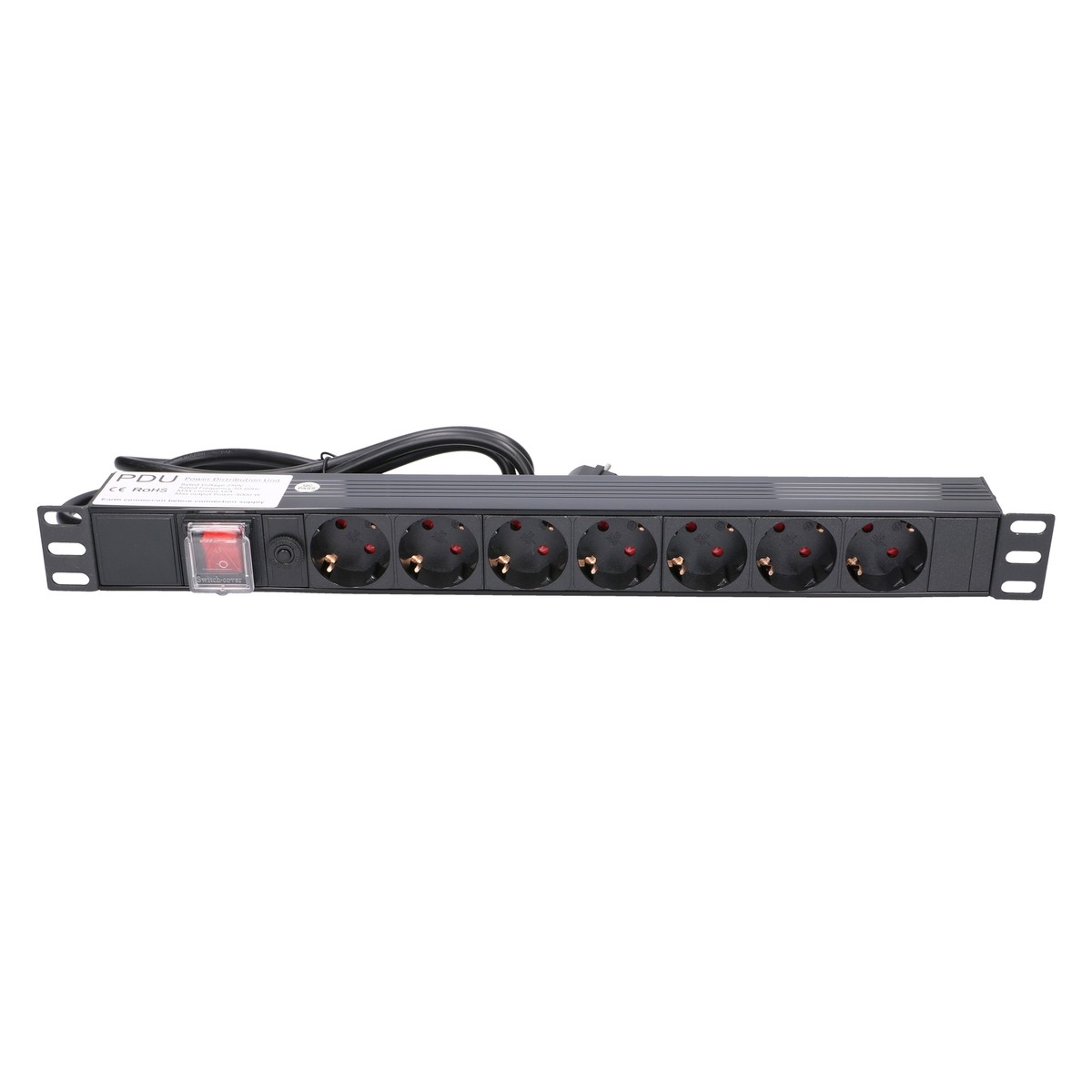19″ 1U power strip, 7 sockets with switch, 2 m