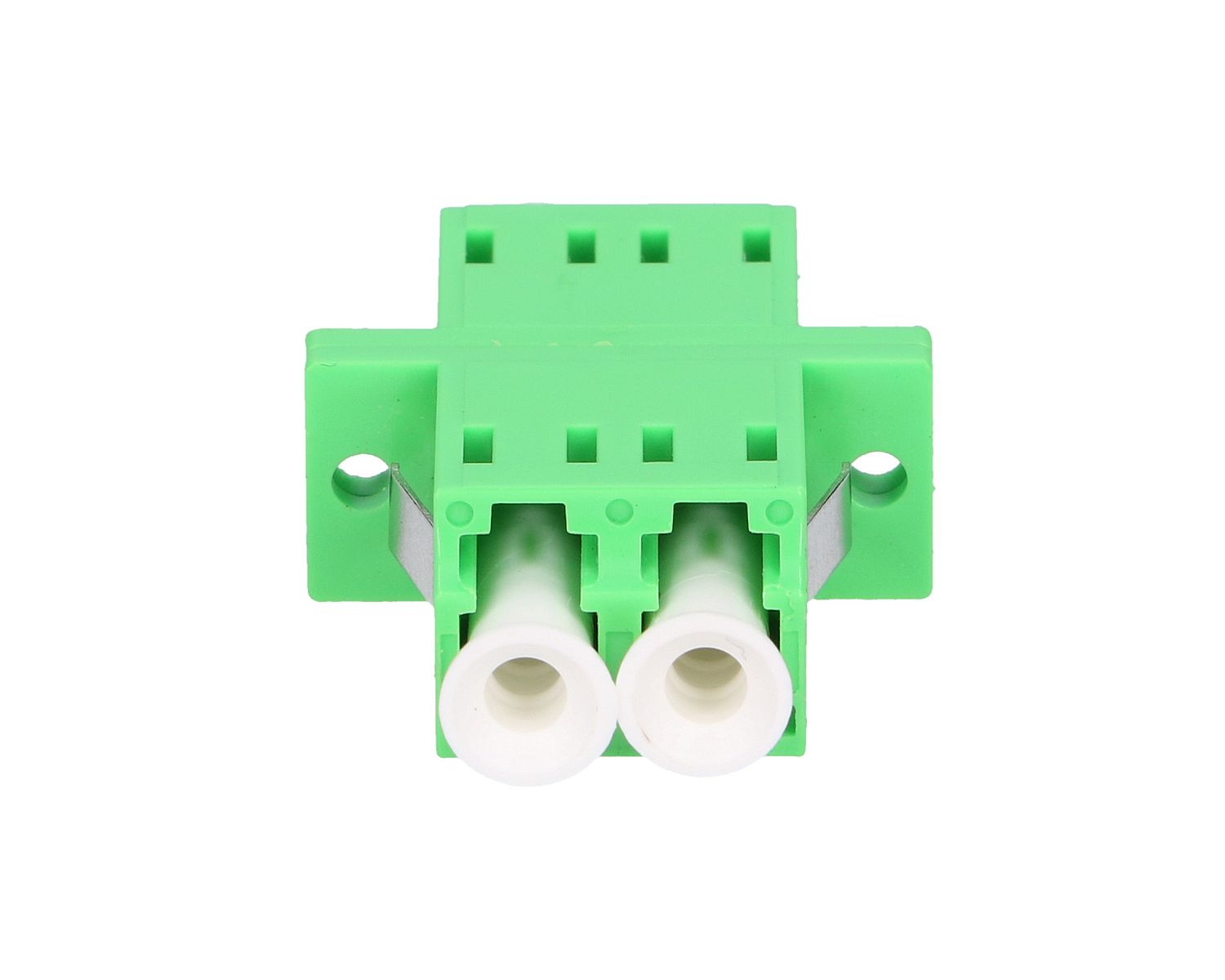 The LC/APC duplex adapter is a component of fiber optic network construction and was made with great precision and attention to quality. The adapter is used in patchcord connections and as a component of fiber optic switches.